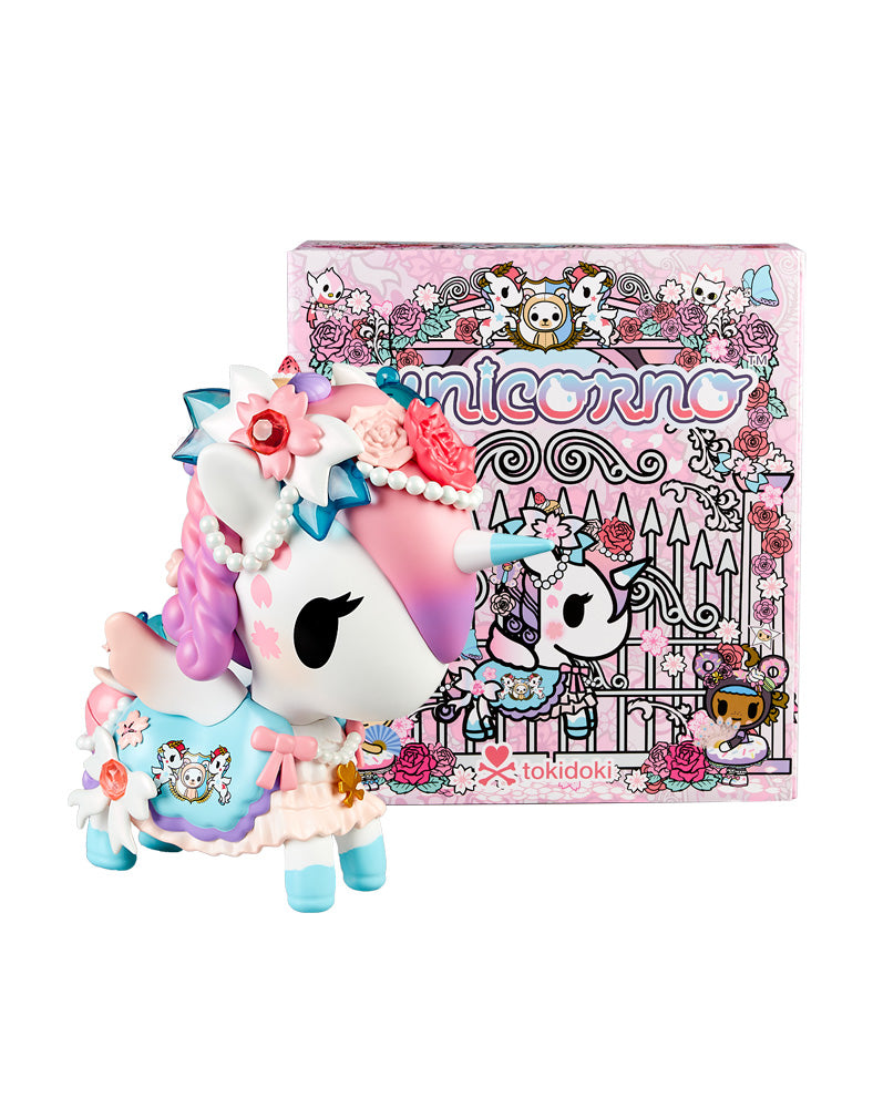 Introducing the Prim 10 Statuette. our most stunning 10 figure yet!  Prim is a proper Unicorno who loves to dream. She can be found wandering in her rose garden. chatting with butterflies and snacking on a cream puff. her favorite treat!  Come frolic in the flowers with the new Prim 10 Statuette!