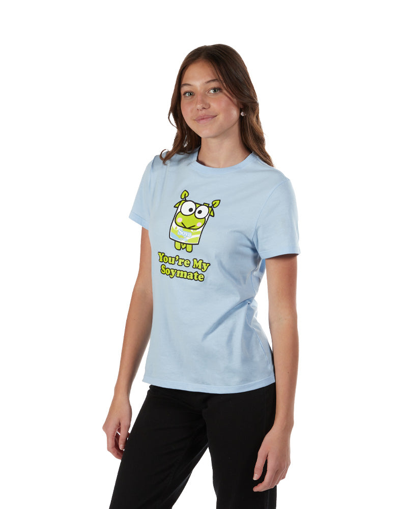 – Women’s screen print tee in light blue